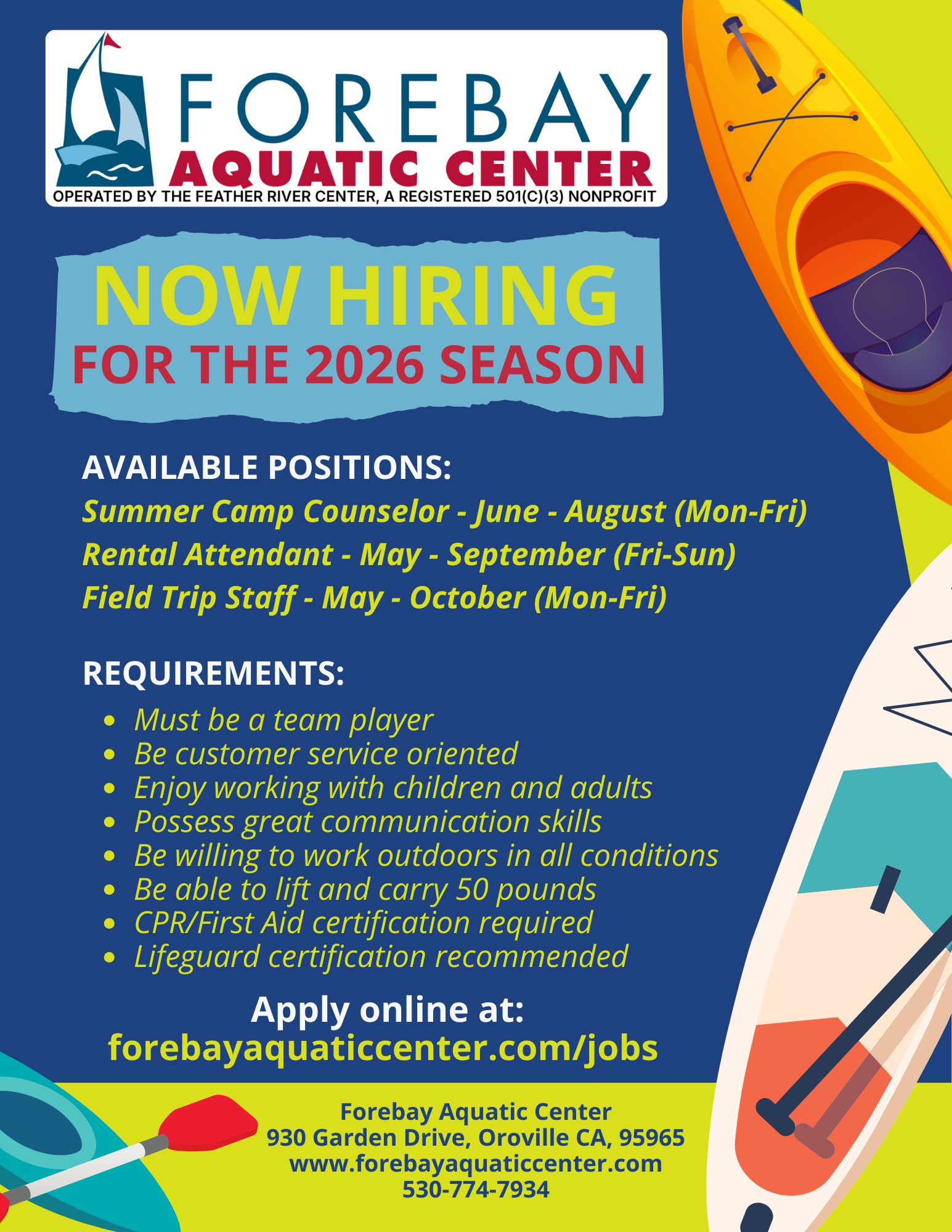 Special thanks to: The City of Oroville’s Supplemental Benefits Fund for the new equipment, California Department of Boating & Waterways for grant funding, and California State Parks!